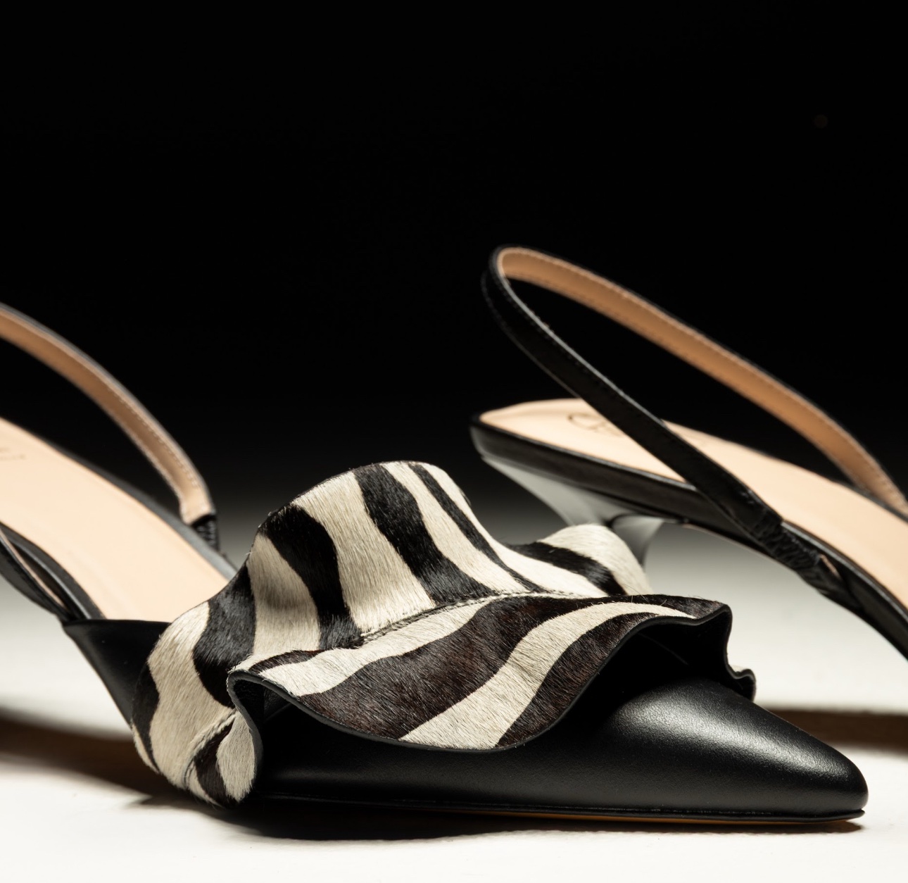 Kate Black Zebra Pointed Toe Court Shoes – Women’s Leather Heels with Sculptural Design