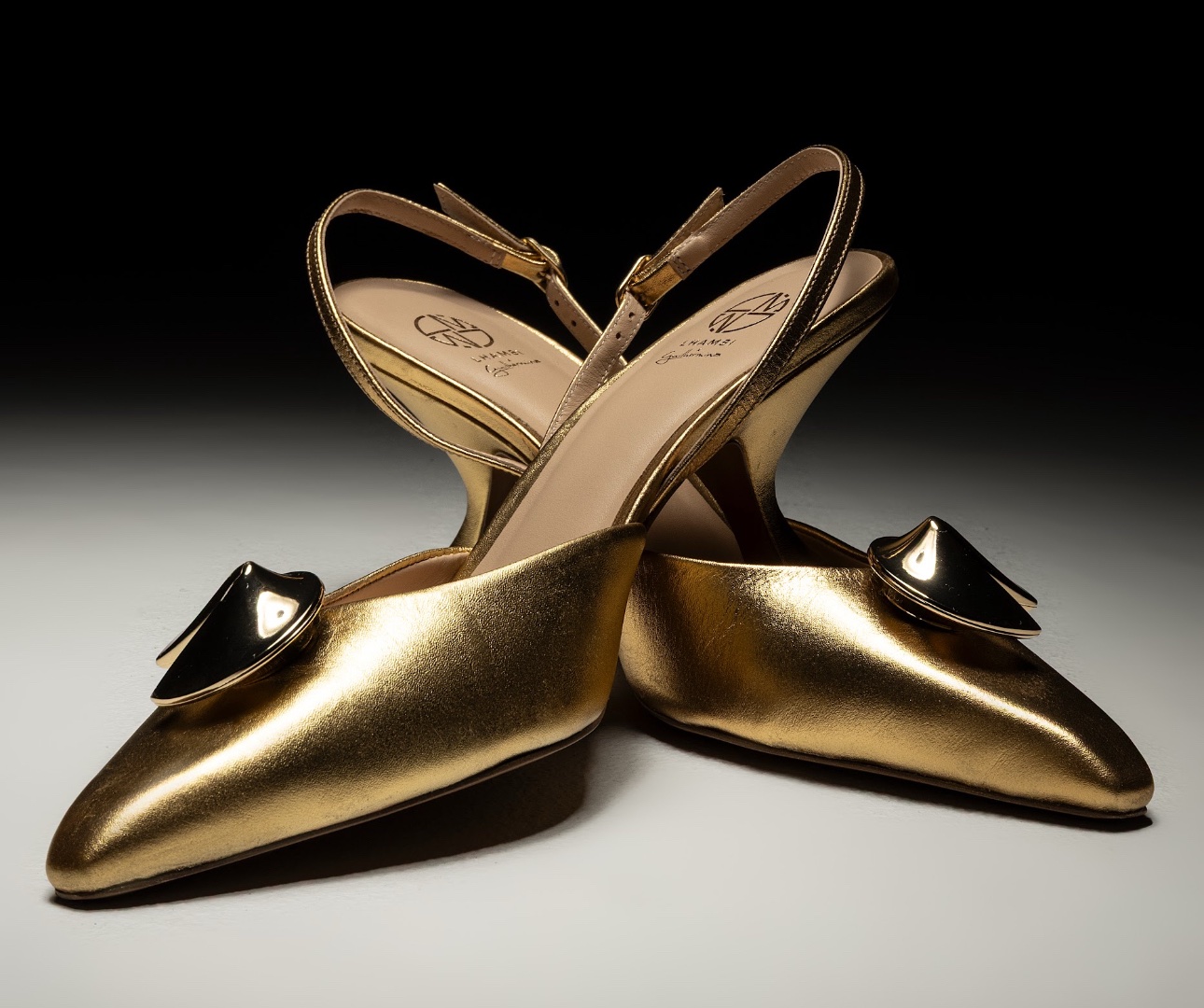 Metallic Gold Buckle Court Shoes – Women’s Leather Stiletto Heels