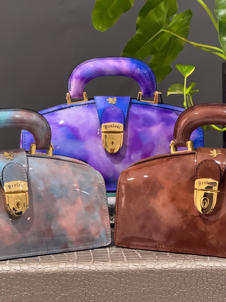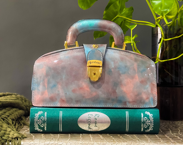 Elevate your wardrobe with our Pratesi Marble Structured Top-Handle Bag, a sophisticated blend of vintage elegance and modern artistry. Designed for women who appreciate refined craftsmanship, this structured handbag features a dreamy cloud-like marble finish in soft blue and blush tones, making every piece uniquely beautiful.